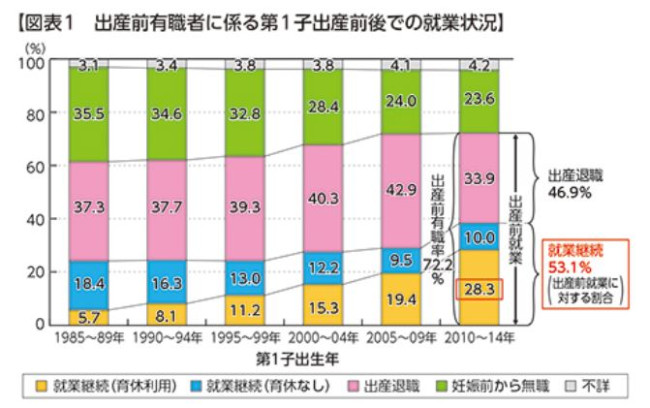 第一子を産んだ後、仕事復帰する女性は五割を超え