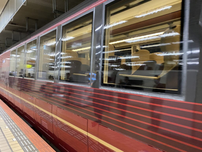 真っ赤な近鉄特急ひのとり号に