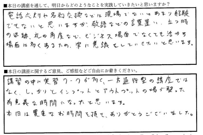 本日はありがとうございました。言葉遣いや電話応対など正しい使い方を心がけたいと思います。