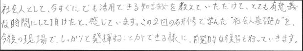 新卒の皆様14名の社会人基礎力研修2日目に登壇しました。