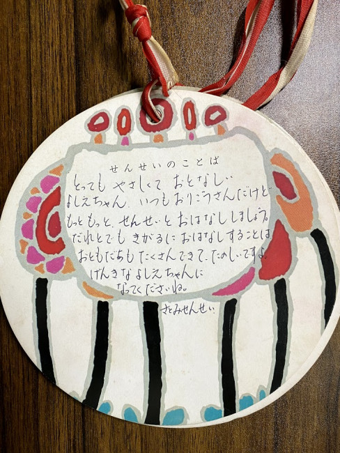 幼稚園の頃、担任の先生からいただいた