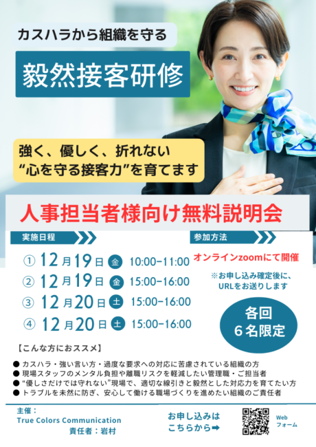 今日は、カスハラ時代に社員様と組織を守る